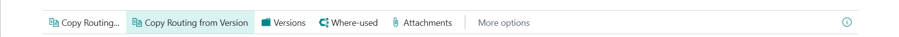An additional action on the Routing List and Routing Card: Copy from Version (available alongside the standard Copy Routing function), allowing a specific version to be copied to another Routing.