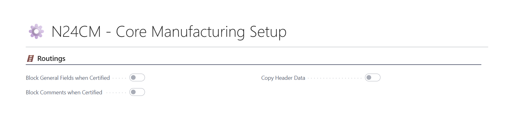 When enabled, the system prevents the modification of header fields (e.g., descriptions) if the associated Routings have the status 【Certified】. This option can be enabled in ⚙️ N24CM - Core Manufacturing Setup.