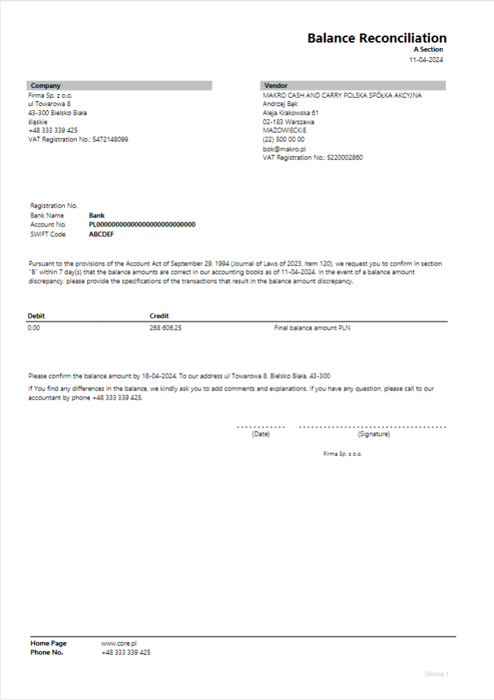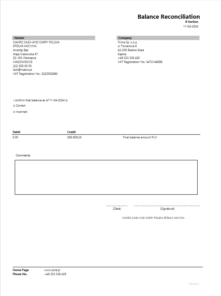 Vendor Balance Reconciliation Request Page