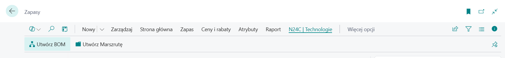 Dodatkowa akcja na liście zapasów: Utwórz BOM umożliwiająca tworzenie BOM-u.