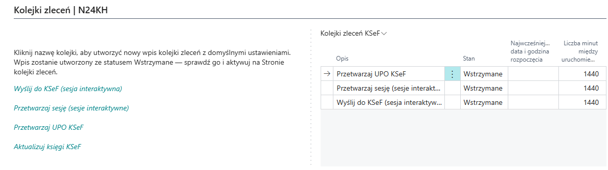 Na liście Kolejki zleceń KSeF widocznej w sekcji ustawień można: